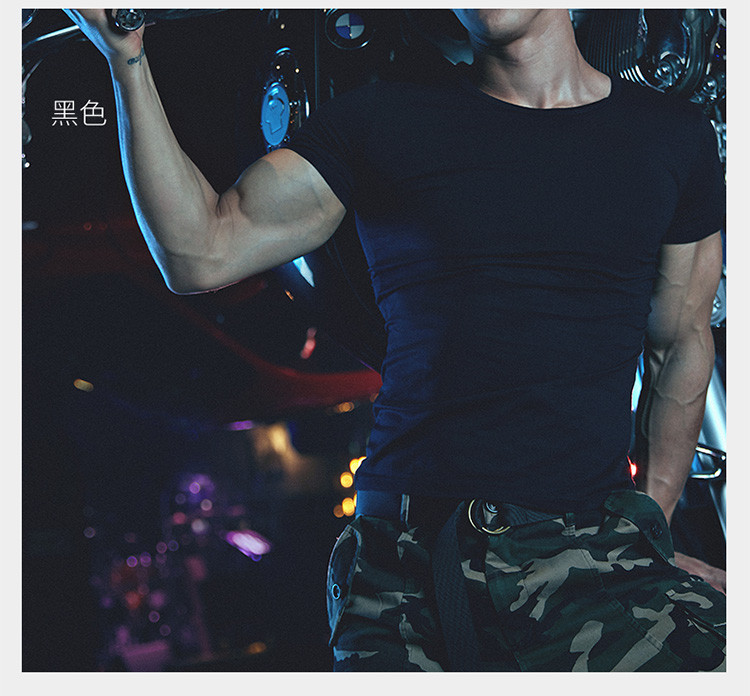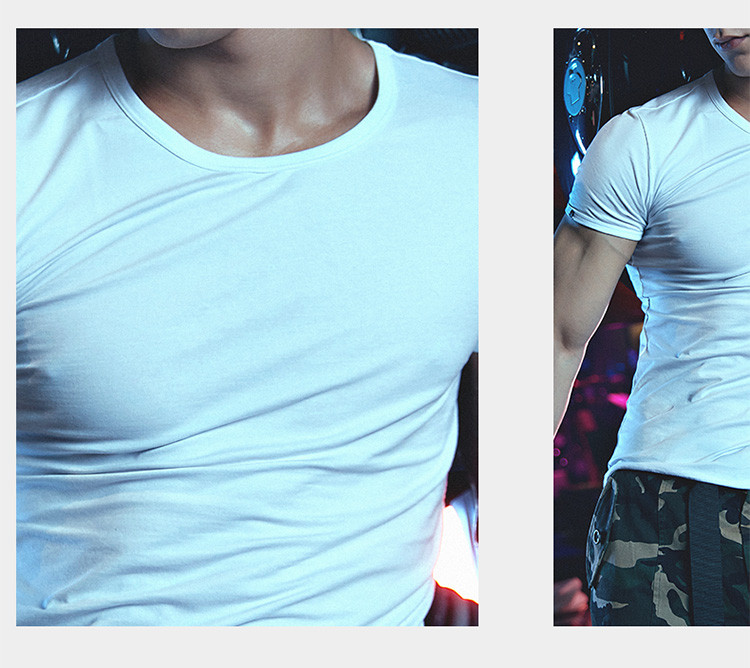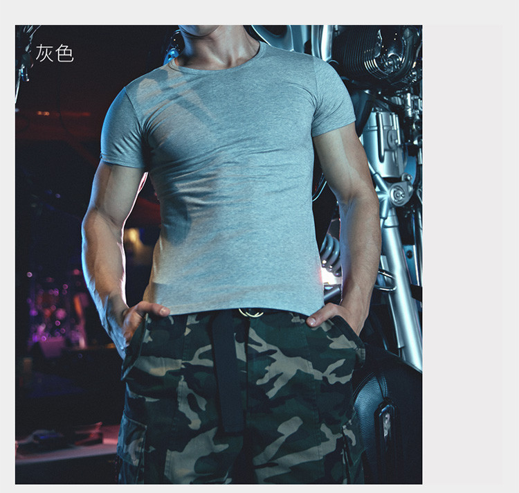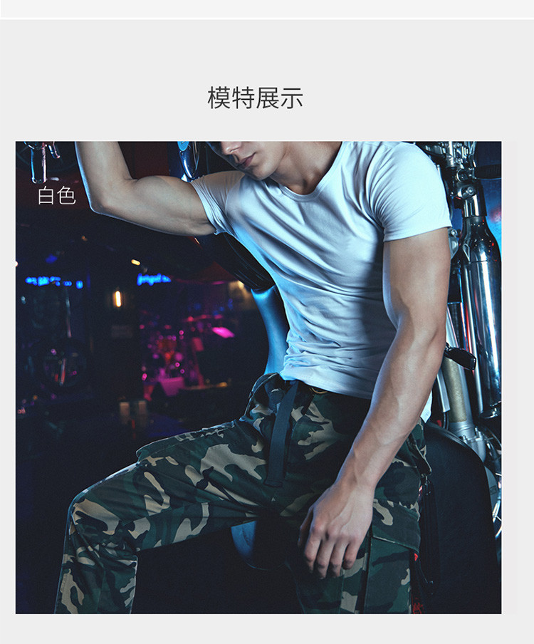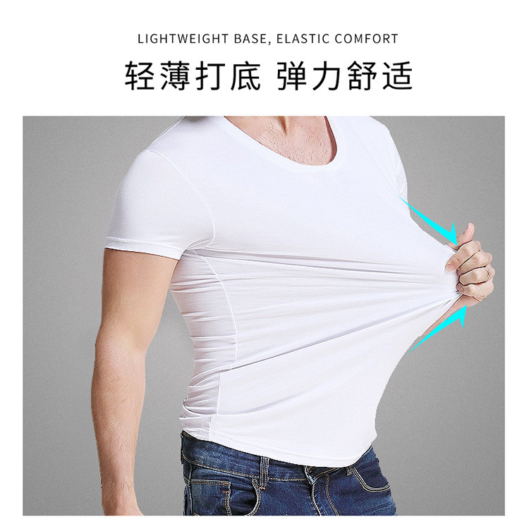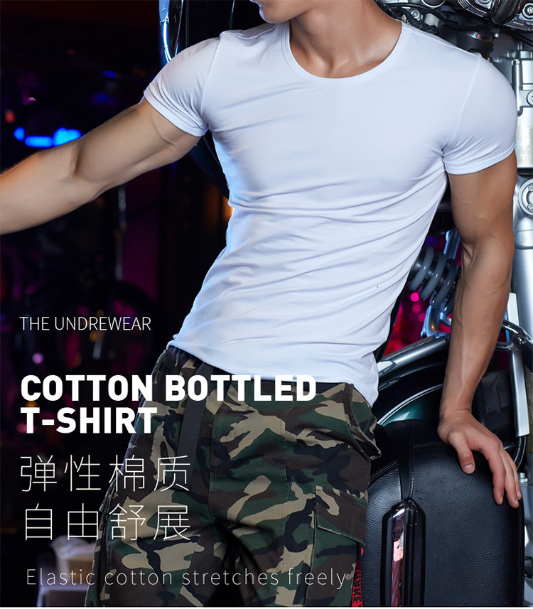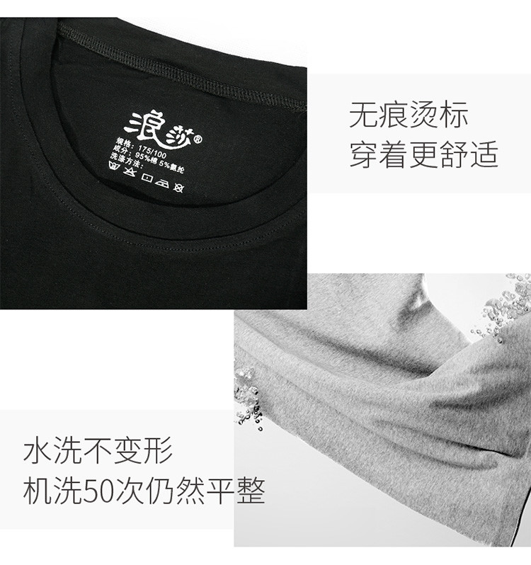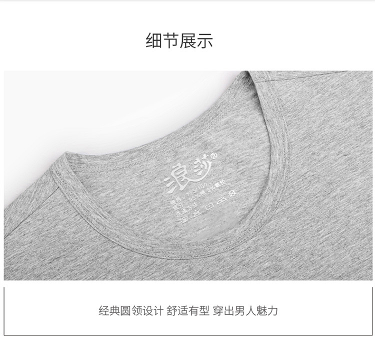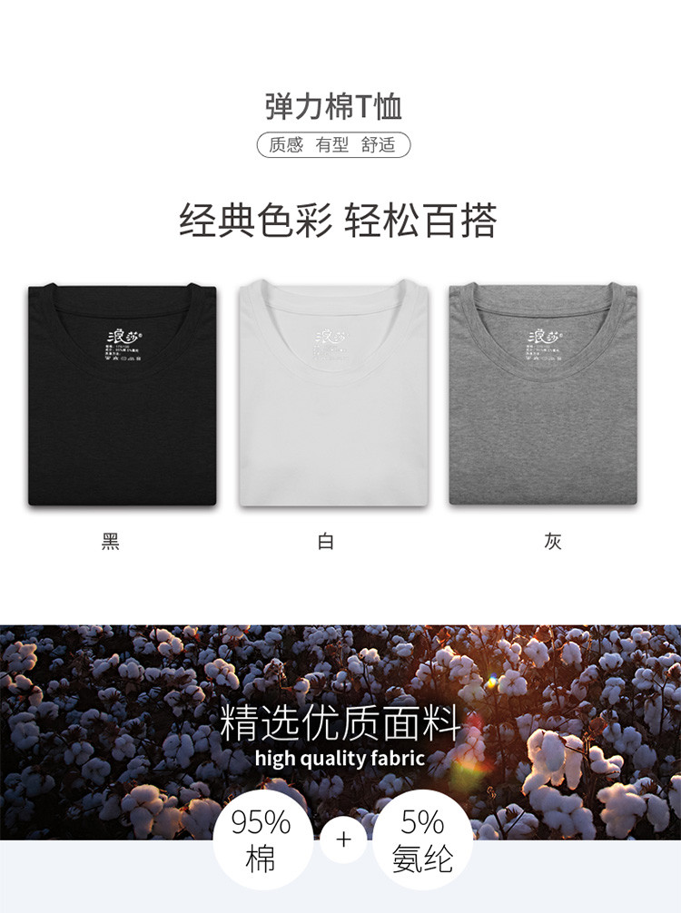 2件浪莎透氣春夏簡約男士彈力棉圓領(lǐng)運(yùn)動T恤領(lǐng)休閑短袖