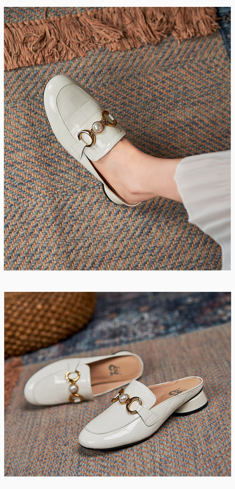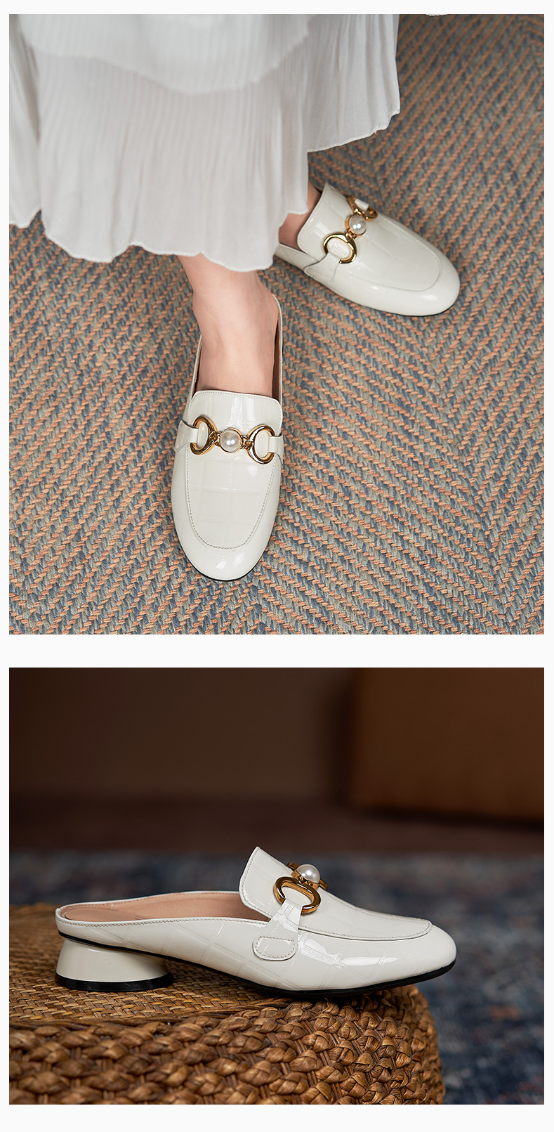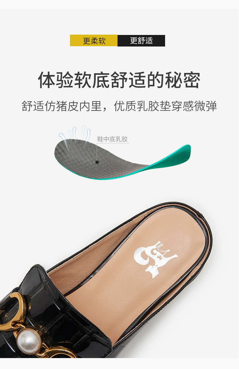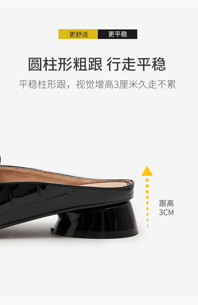 包頭半拖鞋女2021年新款夏季厚底外穿中跟懶人穆勒鞋時尚漆皮涼拖