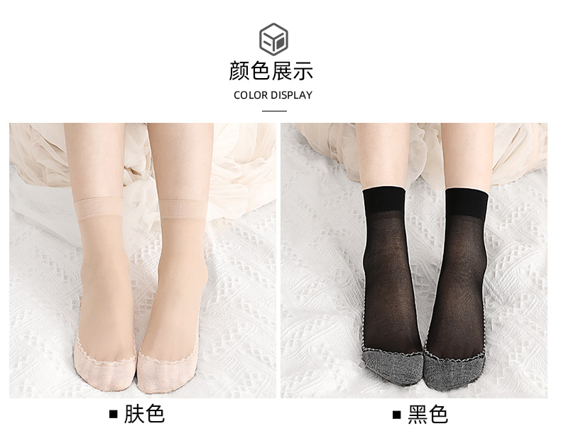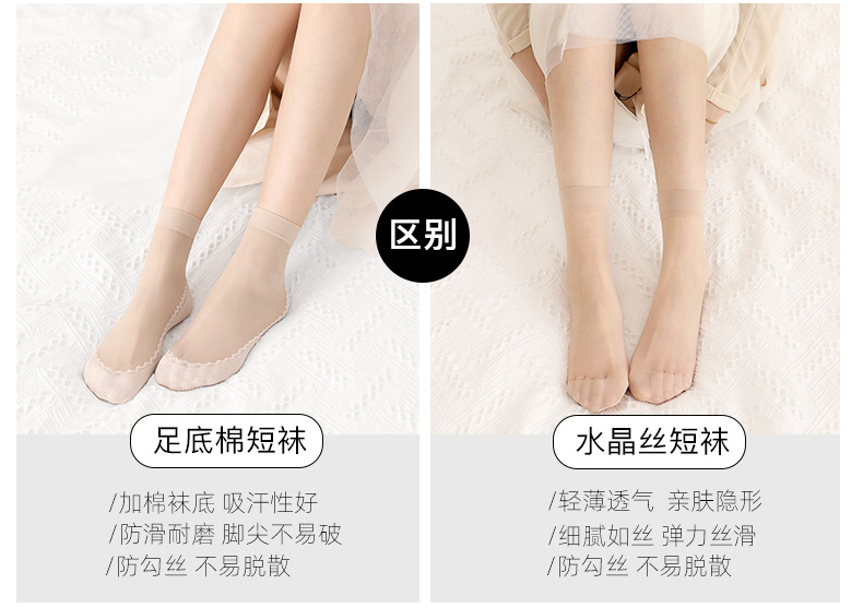 浪莎絲襪女薄款春秋水晶絲短襪耐磨防勾絲夏季黑肉色棉底襪子中筒