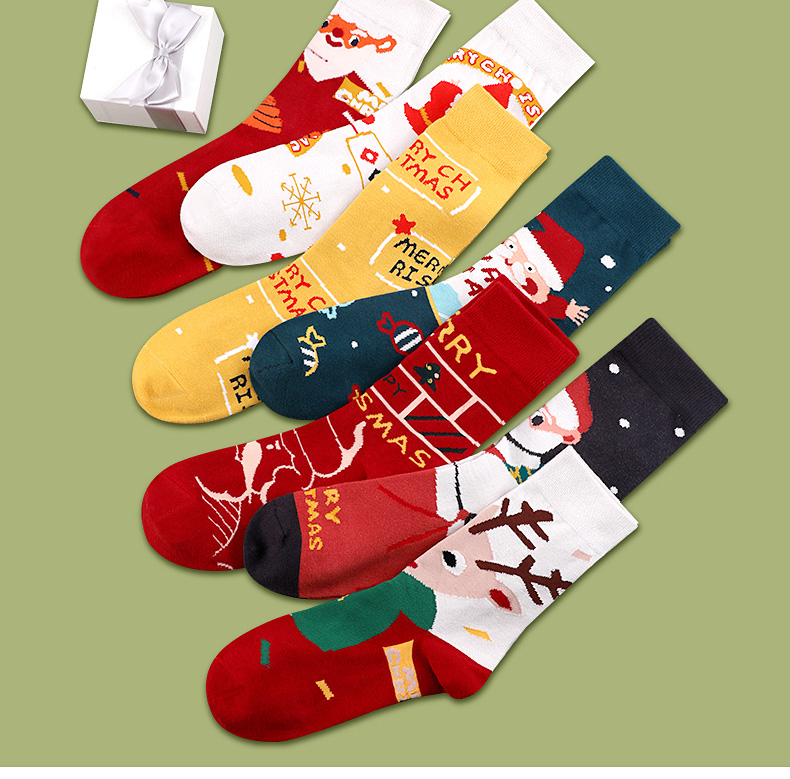 浪莎圣誕襪子女中筒襪秋冬季可愛本命年紅襪子圣誕節禮盒加厚棉襪